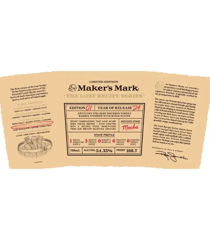 2024 Maker’s Mark The Lost Recipes Edition 01 Ten Oak Staves Barrel Finish Kentucky Straight Bourbon Whiskey 700ml
