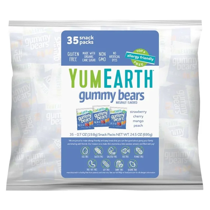 YumEarth Organic Gummy Bears – Fruity Gummy Candy Snack Packs Gluten Free Snacks for Kids – Allergy Friendly Non-GMO No Artificial Flavors or Dyes – Assorted Flavors 0.7 oz. (Pack of 35)