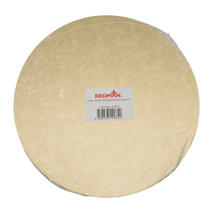 WOODEN CAKEBOARD ROUND GOLD 13″ (#61371)